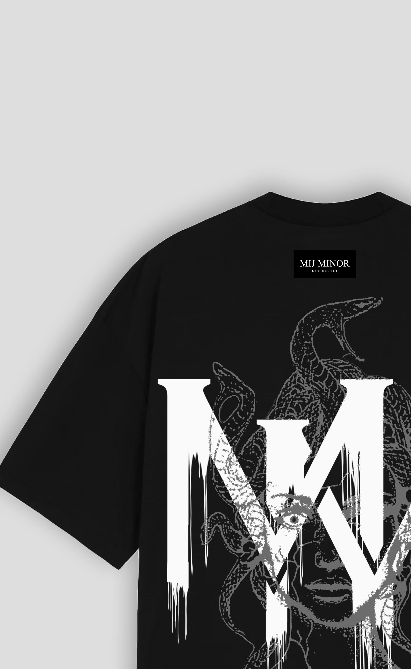 Introducing the STONE MEDUSA T-shirt—a striking fusion of art and fashion. Crafted from 100% luxury cotton with a weighty 220 gsm, this shirt exudes premium quality and comfort. The back features an exclusive MIJ MINOR MEDUSA design, screen-printed in two bold colors, creating a captivating and edgy look. The front is subtly adorned with a small, centered MIJ MINOR logo, offering a touch of understated sophistication.